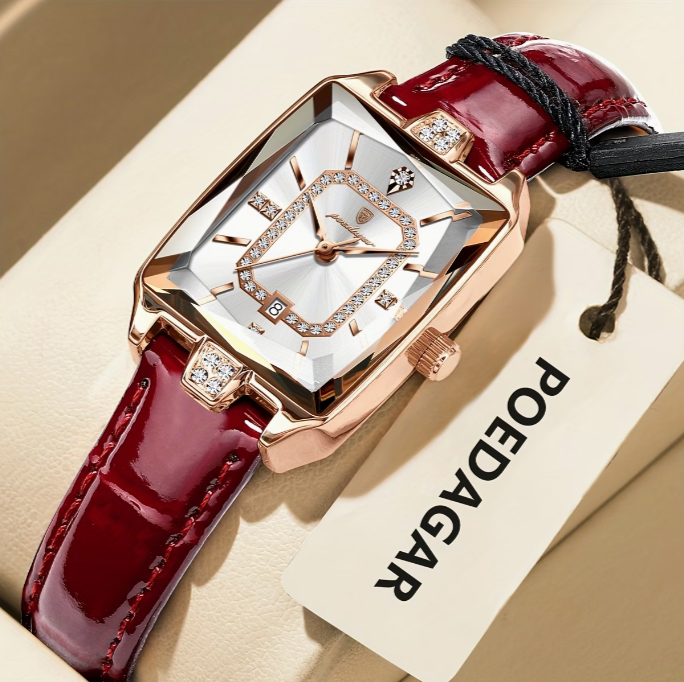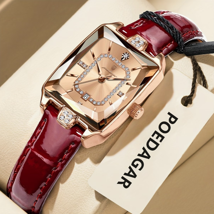 womens elegant watch   ladies wristwatch with burgundy dial square case quartz movement high quality up to 3atm 30m pu leather strap everyday formal jewelry like accessory for women stylish wristwear sophisticated     dial fashionable   fashion accessory chic wristwear durable   professional women Product details 1